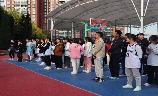 本次体育节篮球友谊赛在一阵欢呼声中拉开帷幕,随着一声哨响,比赛进入了激烈的角逐,赛场下的同学们也在热情高昂的讨论着比赛进程,掌声、笑声、呐喊声此起彼伏,整个运动场上充满欢快激昂的气氛。