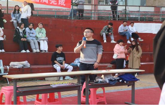 本次体育节开幕式分为五个环节:运动员入场、主持人致辞、宗积章老师讲话、裁判员运动员代表宣誓、篮球友谊赛。会议伊始,邹丹致开幕词,对精心筹备本届体育节的工作人员表示诚挚的谢意,向全体裁判员、运动员致以亲切的问候。会上,宗积章对本次体育节提出要求,他希望同学们贯彻“友谊第一,比赛第二”的精神,赛出风格,赛出水平,赛出真我风采并对本次体育节给予美好的祝愿,祝愿本次体育节取得圆满成功。最后,裁判员代表和运动员代表分别宣誓。