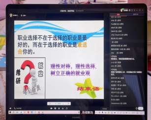 林丽在宣讲中指出,什么样的选择决定什么样的生活,今天的生活是由我们之前的选择决定的,今天的选择决定未来的生活,职业选择不在于选择的职业是最好的,而在于选择的职业是最适合自己的,个人的去向,一定要理性选择。